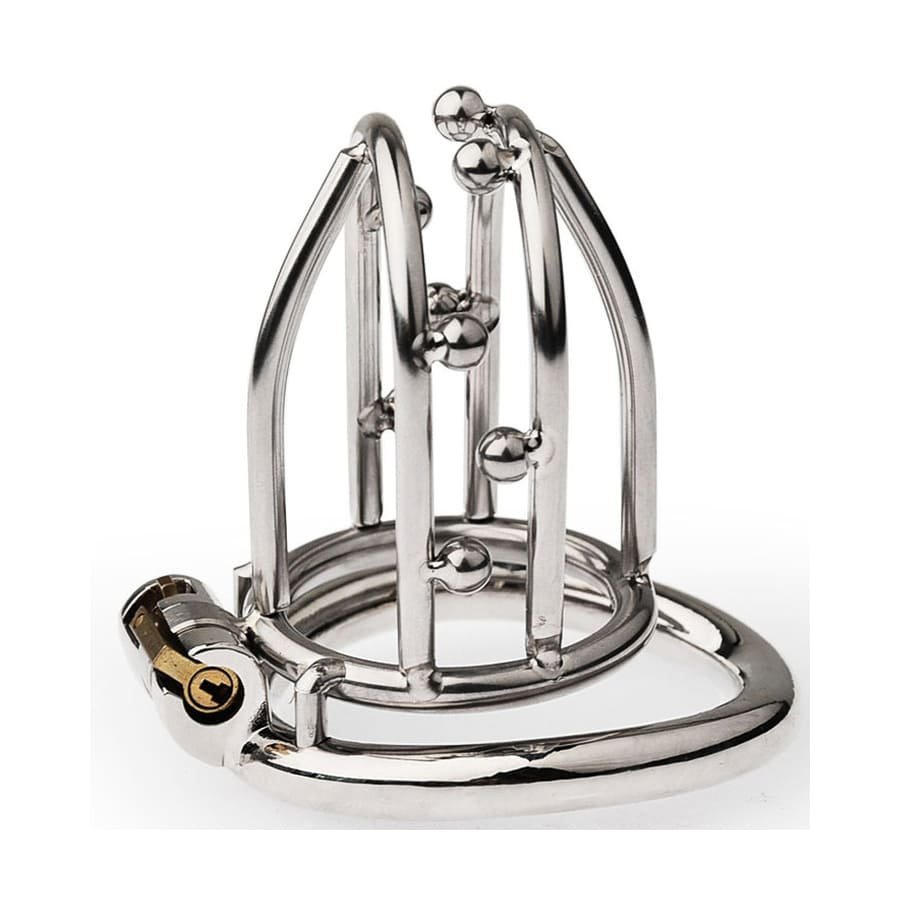 La Cage de Chasteté en Métal à Boules est conçue pour instaurer un contrôle strict et sécurisé du pénis. Sa structure en métal droite et ses petites perles sur les côtés offrent un design à la fois esthétique et intimidant, symbole de soumission et de maîtrise. Les perles vont venir titiller le sexe du Soumis, l’excitant encore plus. Malheureusement pour lui, l’érection sera impossible car il sera bien tenu dans la cage de chasteté : excitant et frustrant.