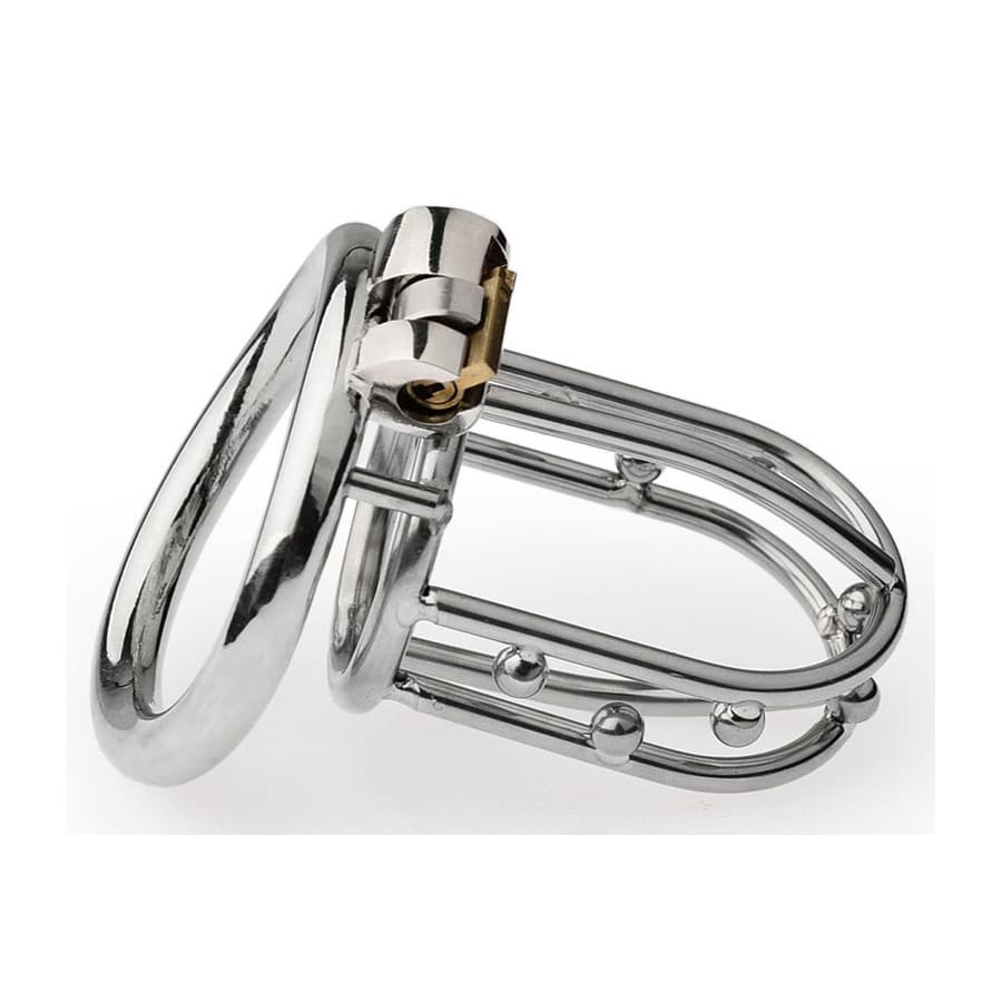 La cage impose un verrouillage strict, empêchant toute stimulation non autorisée. L’acier inoxydable solide et l’anneau (de 40 à 50mm) assurent stabilité et sécurité, permettant un port prolongé sans risque. Les perles décoratives et d’excitation renforcent l’aspect visuel de domination et la sensation de confinement.