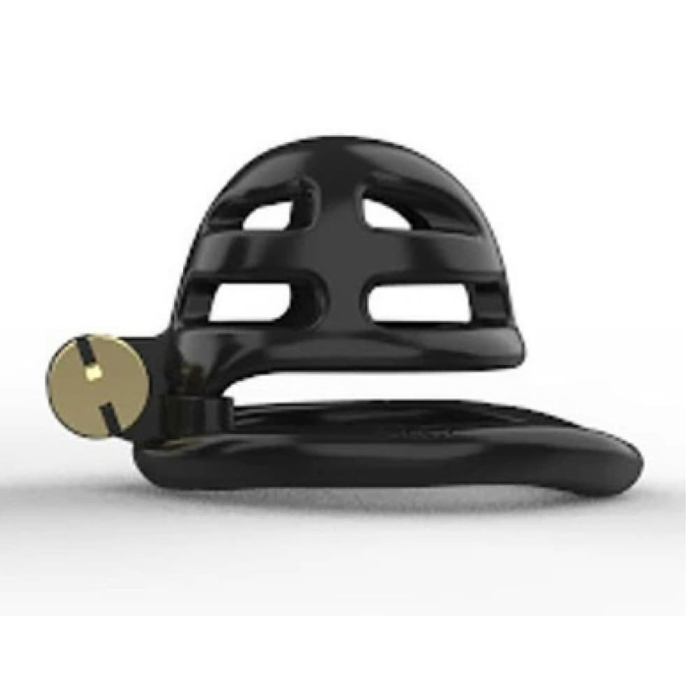 Cette cage de chasteté masculine en plastique noir est spécialement conçue pour offrir un contrôle strict tout en restant discrète et confortable. Disponible dans sa version courte ici, elle s’adapte parfaitement à la morphologie du soumis et au niveau de contrainte souhaité :