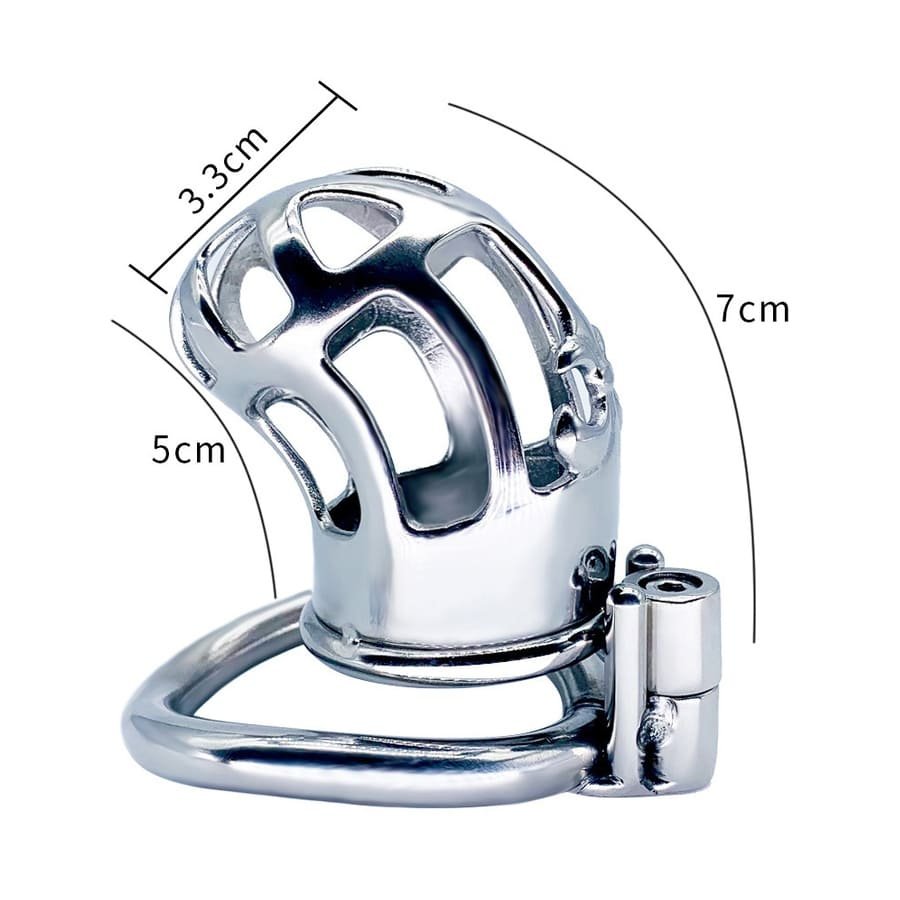 La cage en acier est équipée d’un anneau de maintien disponible en plusieurs diamètres afin d’assurer un ajustement précis selon la morphologie. La fermeture par vis et sa clé allen fournie renforcent l’aspect de verrouillage strict, parfait pour un contrôle continu et sans compromis.