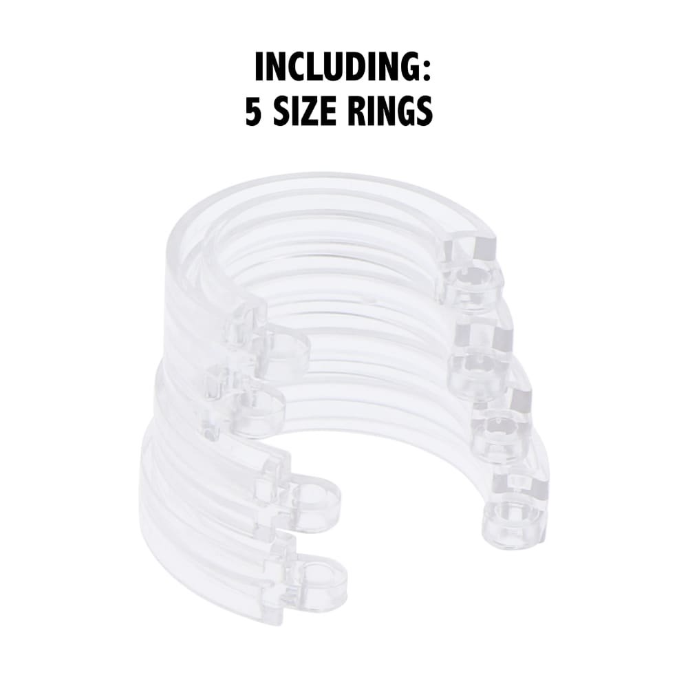 Entièrement réglable : fournie avec 5 anneaux péniens de diamètres différents (3,5 / 3,8 / 4,2 / 4,5 / 4,8 cm) pour un ajustement sur mesure
